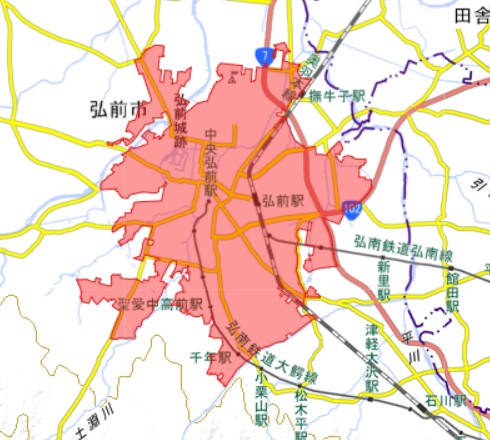 青森市中心部、十和田市中心部、三沢市中心部、黒石市中心部、弘前市中心部、五所川原市中心部、むつ市中心部、八戸市中心部
