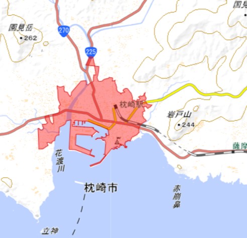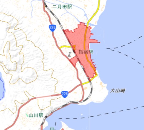 地図上の赤い色に覆われてる部分が「did=人口集中地区」です。