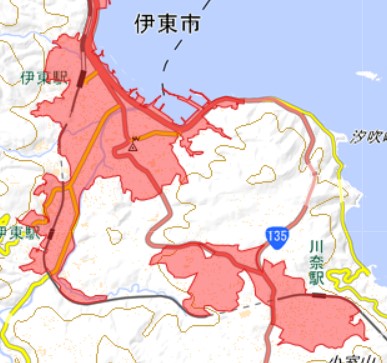 地図上の赤い色に覆われてる部分が「did=人口集中地区」です。