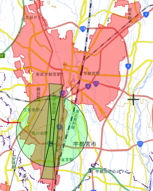 栃木県は市街地の多くがDID指定となる地域があり、無許可で飛行できないエリアが広いため注意が必要です。