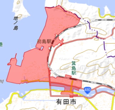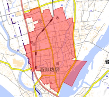 地図上の赤い色に覆われてる部分が「did=人口集中地区」です。