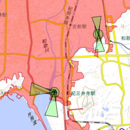 和歌山県は市街地の多くがDID指定となる地域があり、無許可で飛行できないエリアが広いため注意が必要です。