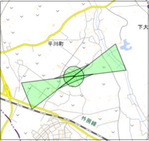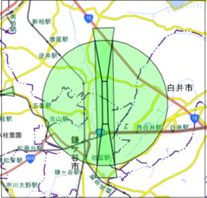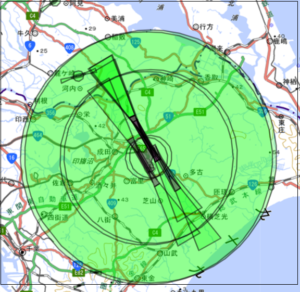また成田空港高さ制限回答システムを使って周辺の高さ制限が確認できます。