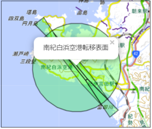 紀南ヘリポートが規制する空港周辺範囲は地理院地図に掲載されていませんので、ヘリポート近隣で飛ばす場合には、直接下記に確認して下さい。