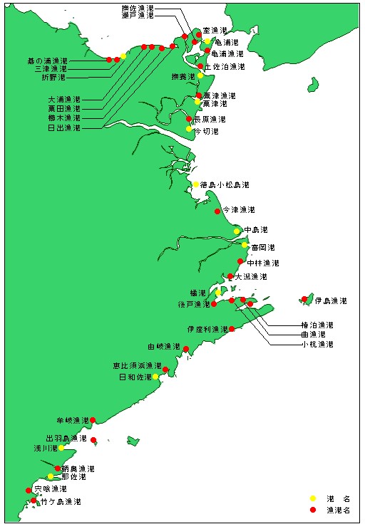 ○折野港、亀浦港、撫養港、粟津港
